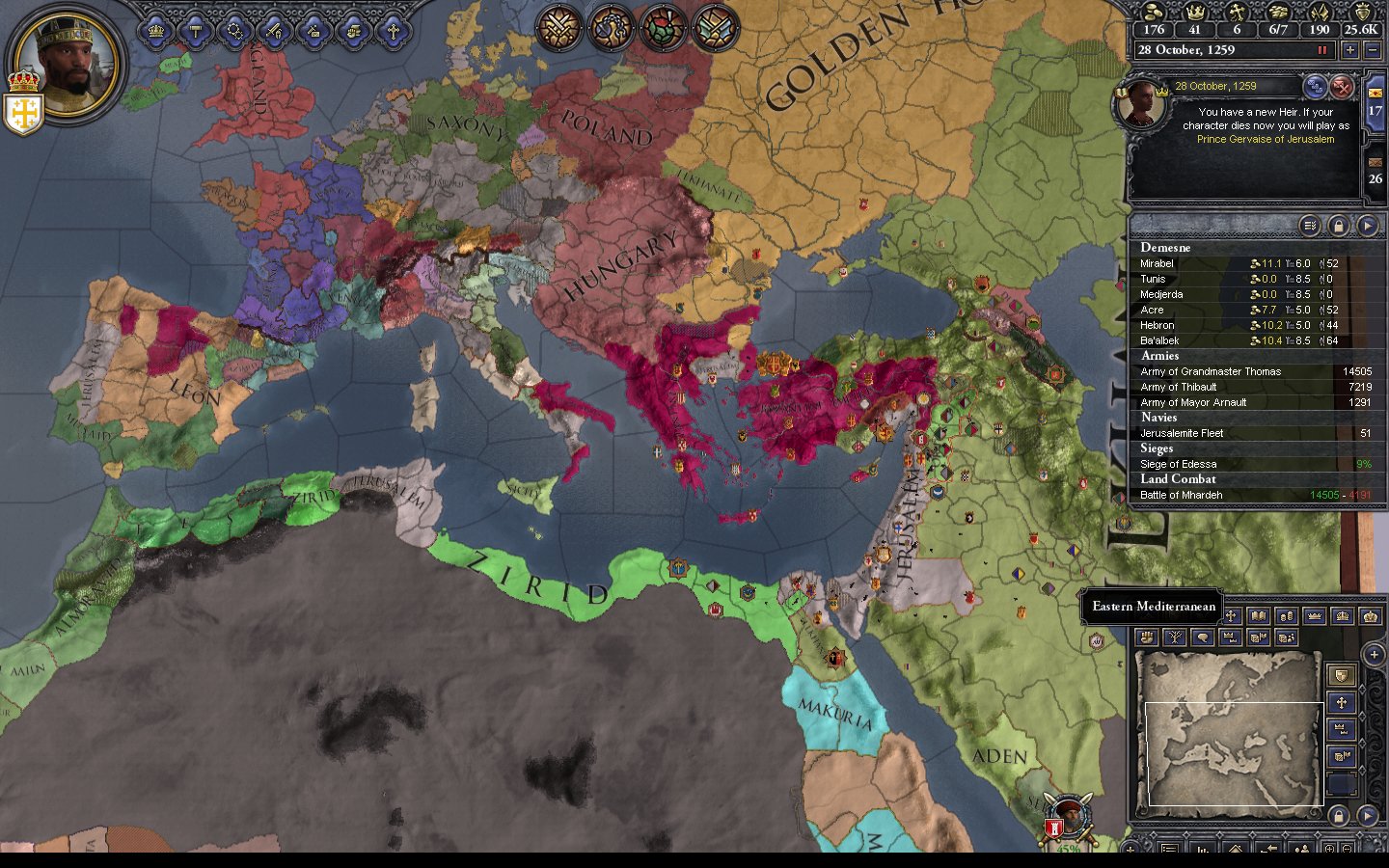 - 1132.12.20 France agrees to assist us against Egypt. I raise both the Knight Hospitaller and Templar also.