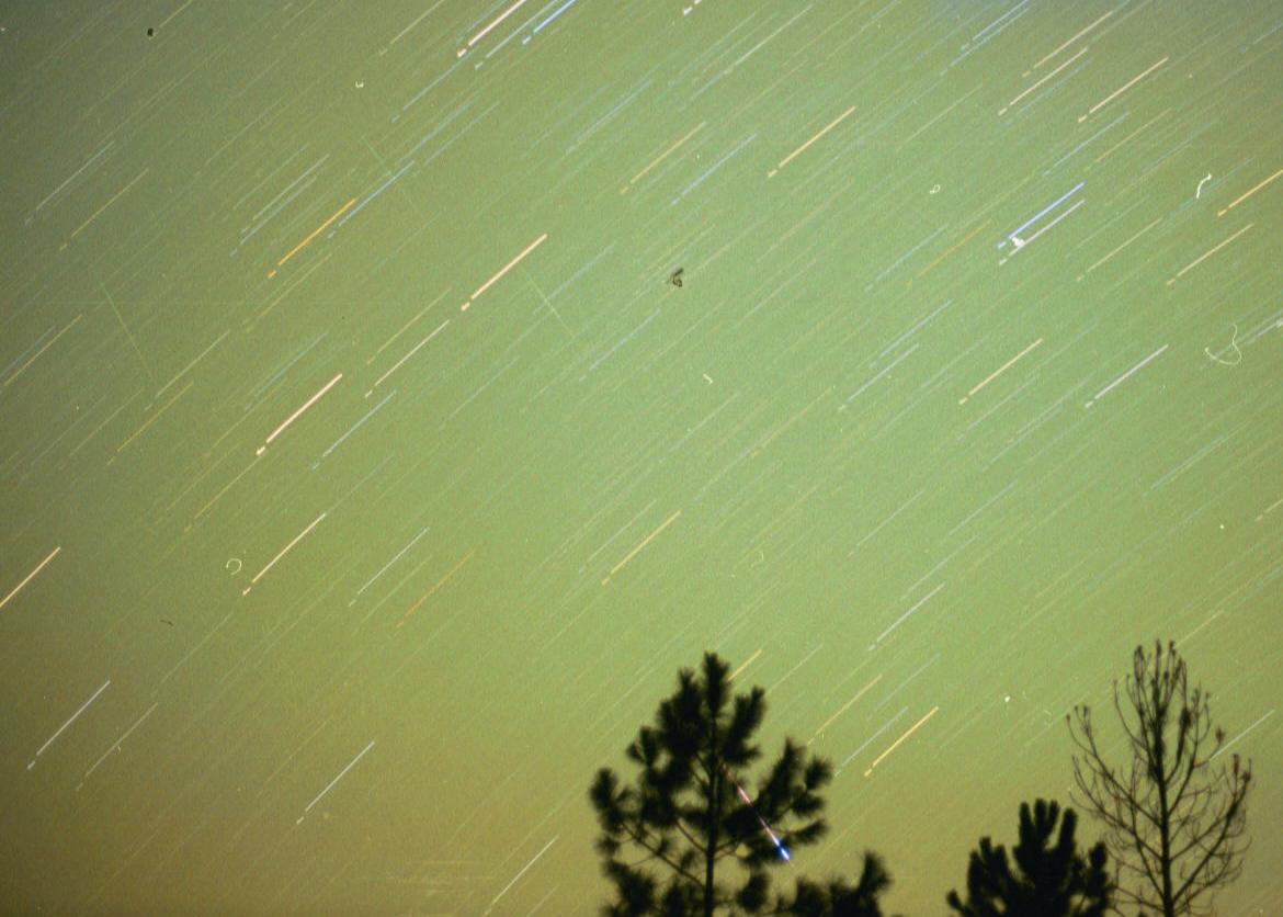 This is the only photo I got but I count 5 in a 10 minute exposure. F1.8 Fujicolor 200 film, 50mm lens, apr 10 minutes SW.